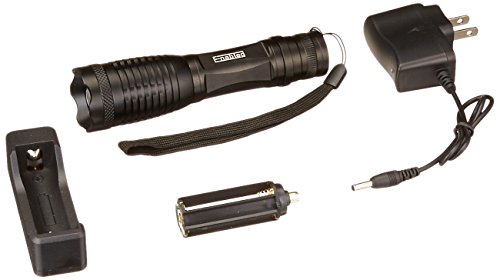 Enabled EN50 Cree 500 Lumen Super Bright LED Tactical Torch Flashlight Bundle with Rechargeable 18650 Battery, AC Charger + Charger Base - 5 Modes - Zoomable, Black