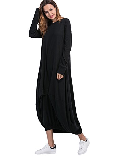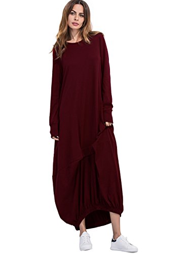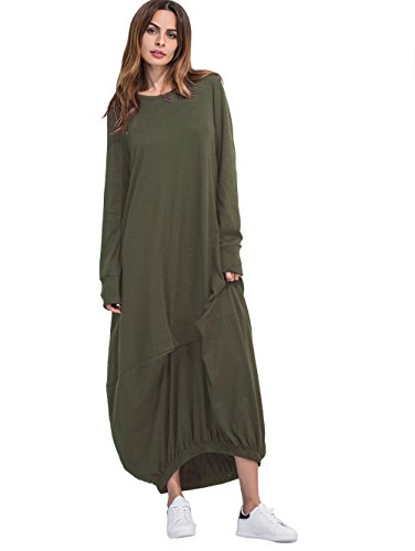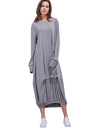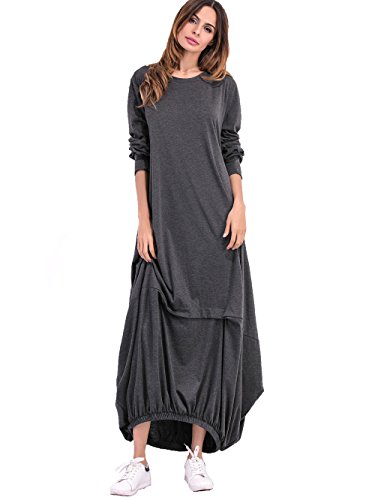 Long Sleeve, Round Neck, Elastic Hem, Maxi T shirt dress, Sweatshirt Dress for Women