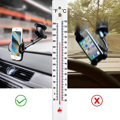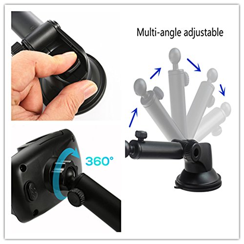 -. Feature : Ultra Sticky Suction Cup: Made of high temperature resistant materials, ordinary suction cup reaches 40 degrees of high temperature will fall off, this one can withstand up to 80 degrees high temperature, ultra Sticky. / Telescopic Arm: It can extend from 90mm-140mm(3.5-5.5 inchs)for making closer viewing to your device with an optimal viewing height. / 360° Rotations Ball: It can be rotate 360 degrees, you can choose the best angle when you use it. The ball joint adapter for optimal viewing. / Flexible Arm Lock: Simply press the button back of bracket to adjust arm width that ranges from 50mm-95mm(2-3.7 inchs). Our car mount holder is compatible with most smart phones, GPS and other digital devices. / High Standard Quality: Two strongly mount clamp utmost protect your phone not easy to fall off. It is a durable necessary tool of your car, just take it home!