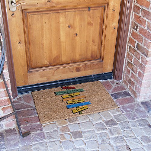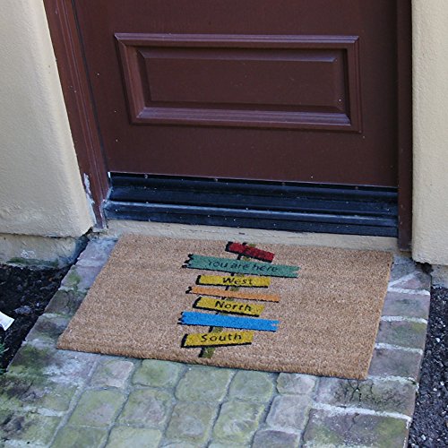 -. Feature : Easily clean off this unique door mat with a quick shake, or use a vacuum to remove the more stubborn grime / Eco-Friendly message mat constructed of woven fibers obtained from the husks of coconuts for a sturdy surface / Coir welcome mats provide excellent scraping surface to rid shoes of the outdoors and keep your floors looking cleaner / Reliable material makes these coir welcome mats a long-lasting product that is sure to endure through all weather conditions / Funny welcome mats offer a colorful illustration of navigational signs in all directions with one that states, "you are here"