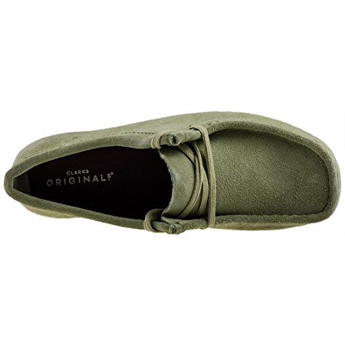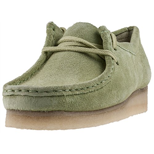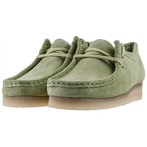 Binding : Apparel Product Description The Womens Wallabee from Clarks Originals combines a Suede upper with a durable Crepe sole. These Shoes feature Lace-up fastening, cushioned insole and Leather lining. Finished with Clarks Originals branding, the style 26131586 comes in a Light Green colourway. 0