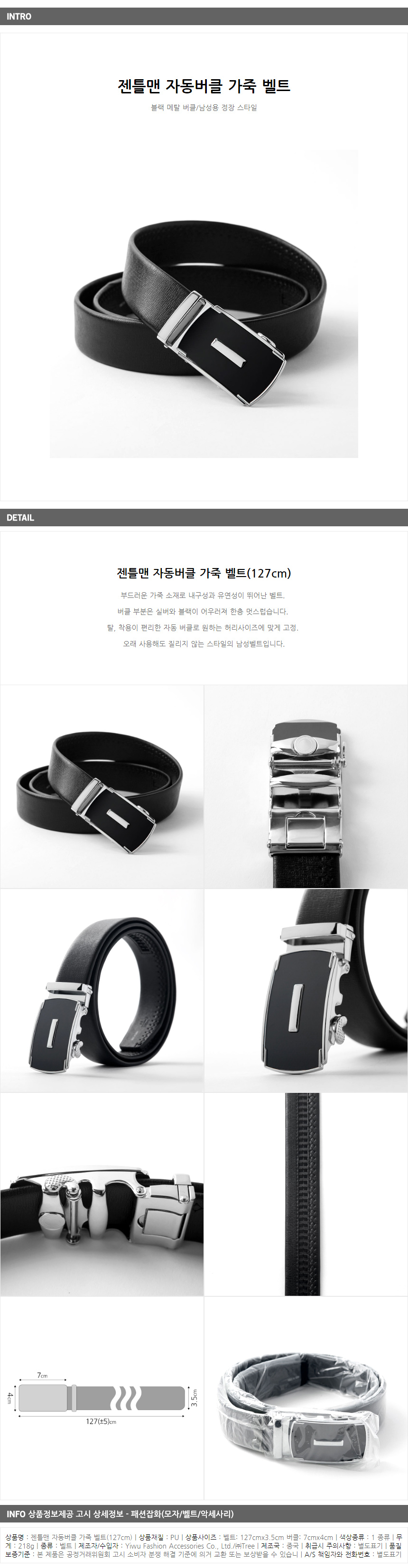 <상품명 : ZP8 젠틀맨 자동버클 가죽 벨트(127cm)>