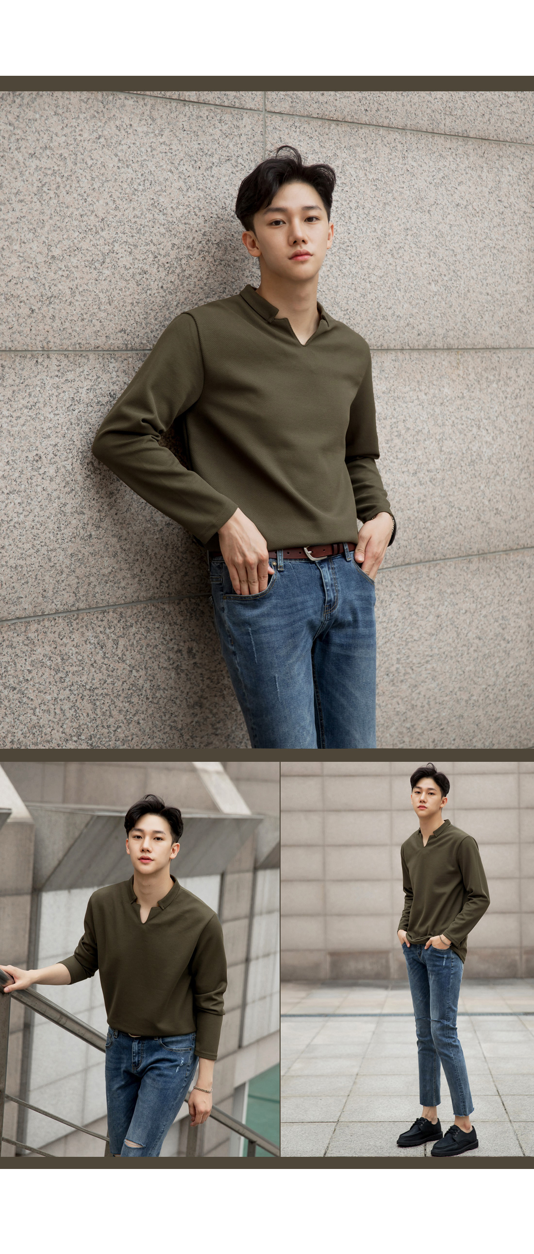 -와플 브이넥 카라 긴팔 티셔츠 입니다.