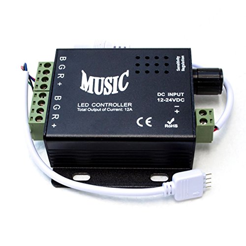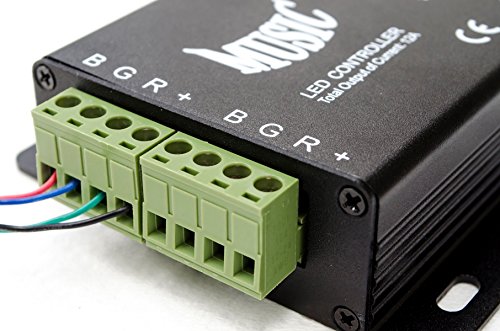 Our Two Channel Sound Activated Music Controller is the ideal controller for musicians, DJs or anyone who likes to throw parties. Your flexible RGB LED Light strips will jump, flash and strobe with the beat, and can be controlled easily by key press with the included remote. It is our most popular RGB controller in bars, clubs and home theater systems. The Sound Activated Music Controller sets up easily with a power supply (not included) along with your choice of multi color strip lights. It includes two separate LED lighting pwm outputs, a remote control, and a sensitivity knob so you can adjust to perfection which beats it picks up with its internal microphone sensor / detector. Great for home or business - throw a dance party or light up a dj or musician stage.