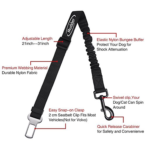 -. Binding : Misc. -. Brand : Mudder -. Color : black -. EAN : 0713072670476 -. Feature : Made from durable nylon fabric, nickel fittings are rust-proof / Restrain your pets safely and enable them to sit, stand or lie down in a car without distracting the driver / Flexible nylon fabric bungee with buffer damping design could protect your dog from sudden brake / Adjustable length: the length of the belt with simple pull can be adjusted within a range from 52.5 to 77.5 cm / The belt clip width is 2 cm, can be snapped on universal buckles; Please check your buckle's size before purchasing -. Label : Mudder -. Manufacturer : Mudder -. PackageQuantity : 1 -. ProductGroup : Pet Products -. ProductTypeName : PET_SUPPLIES -. Publisher : Mudder -. Studio : Mudder -. Title : Mudder Pet Dog Seat Belt Leash Adjustable Cat Safety Leads Vehicle Car Seatbelt Harness with Elastic Nylon Bungee Buffer -. UPC : 713072670476