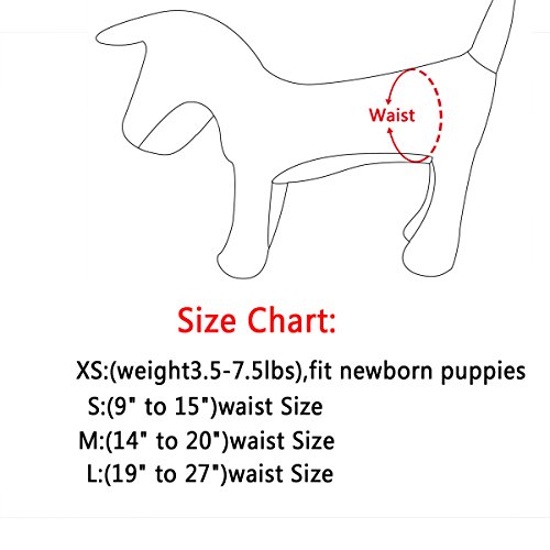 Size Chart: XS:(weight3.5-7.5lbs),fit newborn puppies S:(9" to 15")waist Size M:(14" to 20")waist Size L:(19" to 27")waist Size