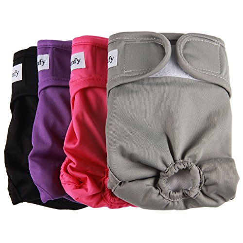 Adjustable waist by velcro closures,durable and easy on and off Easy put on and take off,Adjustable dog's waist girth,and won't stick to your pets fur. Keep your dog enjoy wearing it and stay in place well when your dog walking and running.