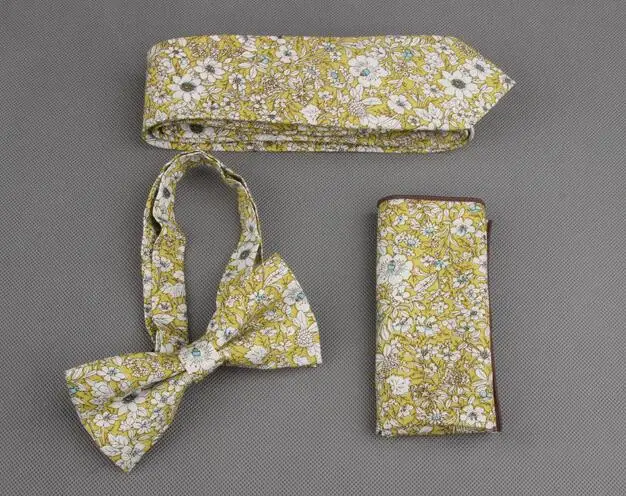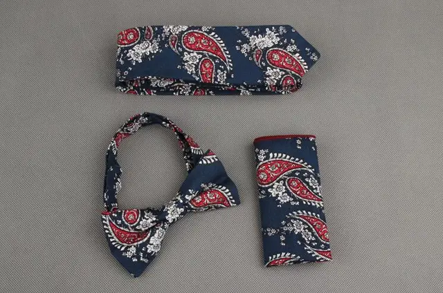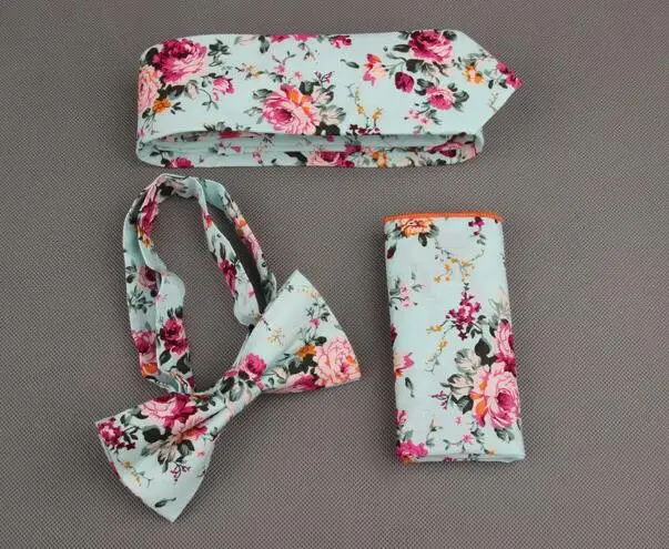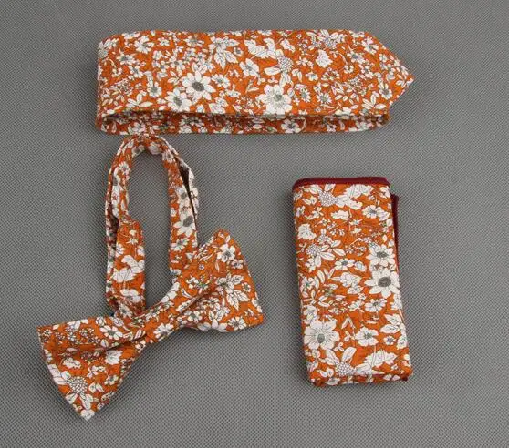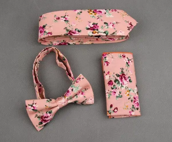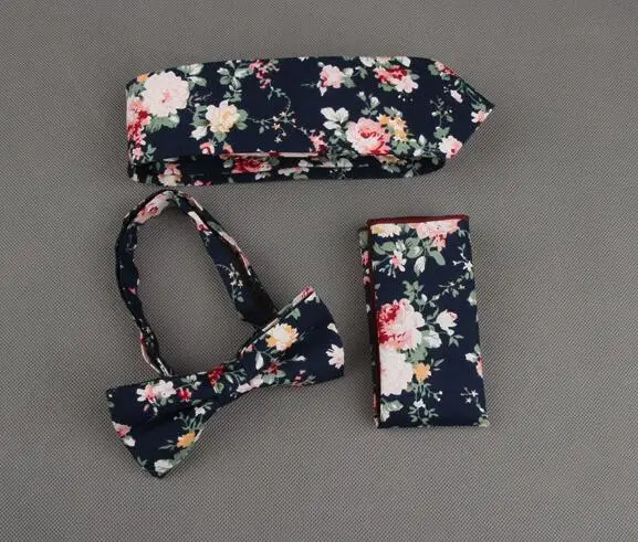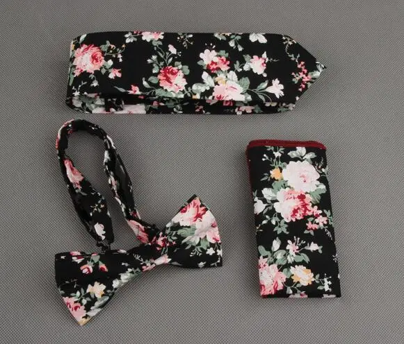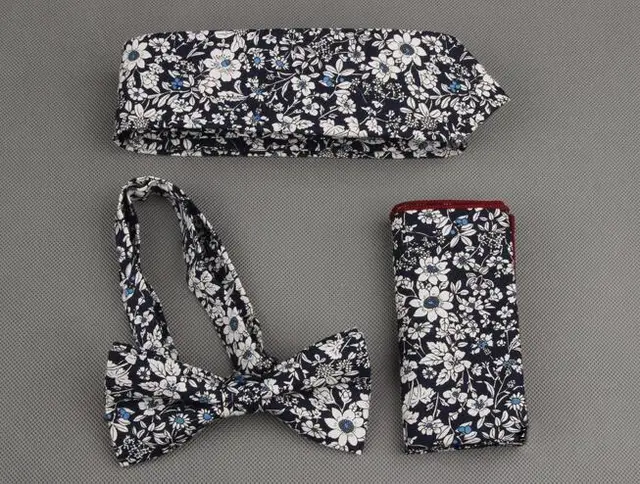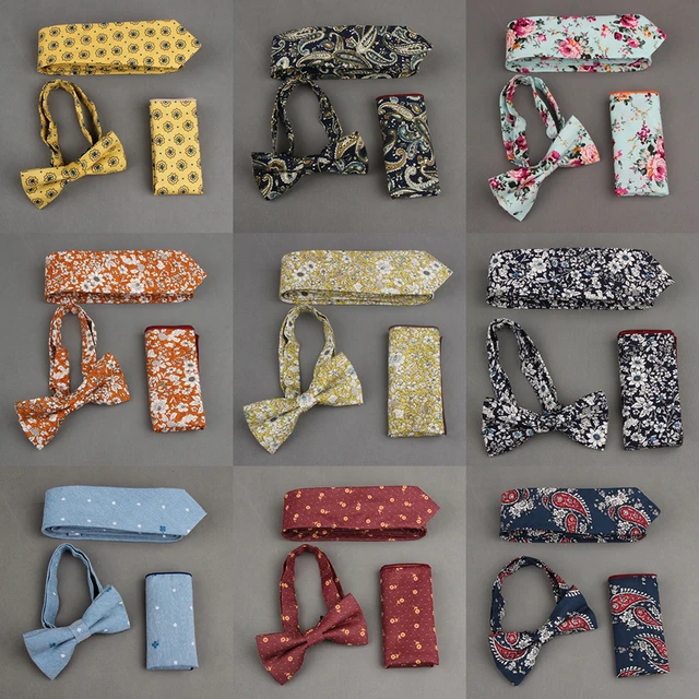 | [해외]JEMYGINS 남성 나비 넥타이 포켓 스퀘어 넥타이 세트 꽃 인쇄 넥타이 및 손수건 세트 웨딩 손수건 나비 넥타이 |