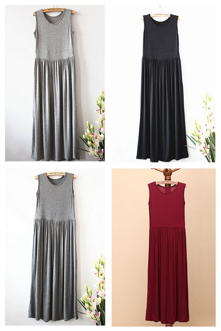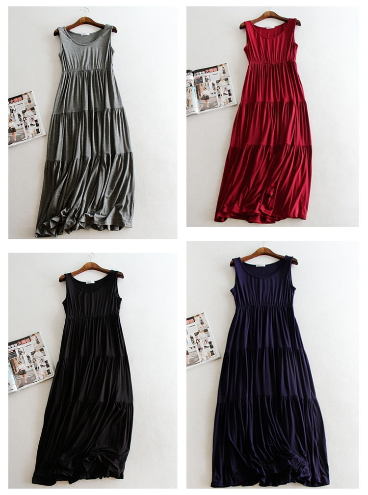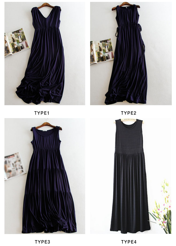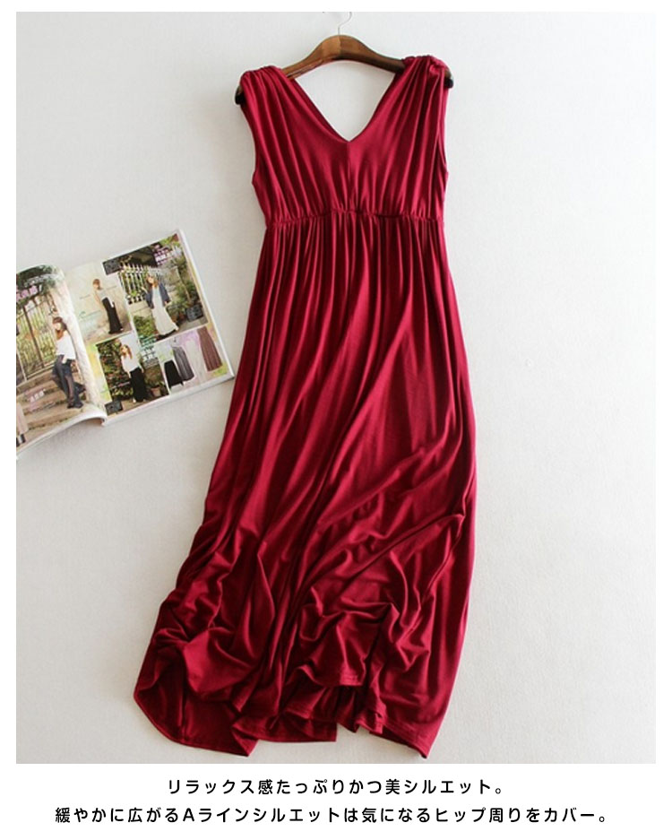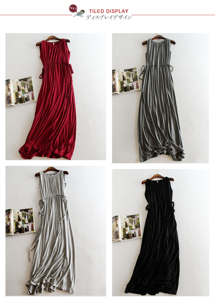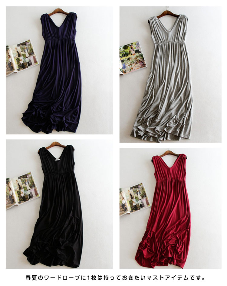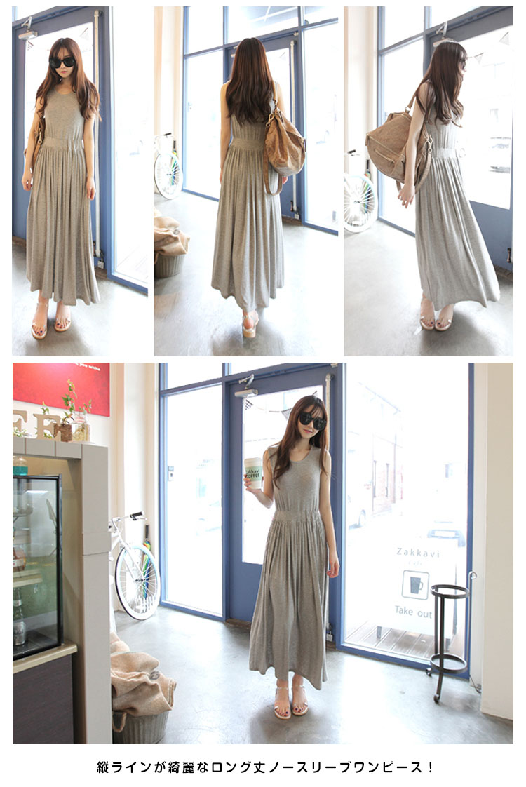 | 大人気のマキシワンピからこれからの季節にマストなさらっと着心地よいモダール素材verが新登場!!無駄な装飾を一切省いた潔いシンプルさが使いやすい決め手!縦ラインが綺麗なロング丈ノースリーブワンピース!春夏のワードローブに1枚は持っておきたいマストアイテムです。 | |