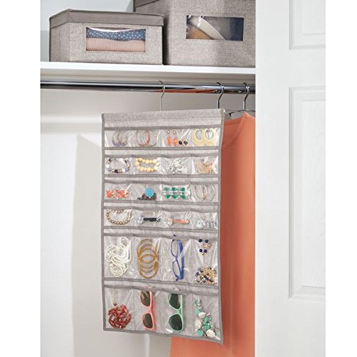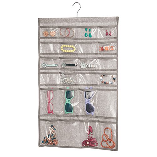 InterDesign Aldo Fabric Hanging Fashion Jewelry Organizer for Rings, Earrings, Bracelets, Necklaces - 48 Pockets, Linen