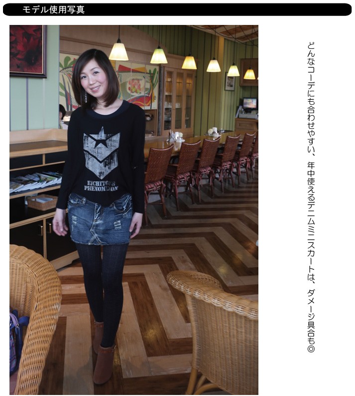 ■定番デニムミニスカートを、 こなれた風合いとダメージ加工でユーズド風に仕上げました。 ■レギンスとの相性もバツグンです!ブーツと合わせてもサンダルでもどんなスタイルにもCUTEに決まります ■ナチュラルな風合いとカラーがヴィンテージデニムのような雰囲気でたちまちこなれたカジュアルが完成。 ■オールシーズン着られる、お洒落なミニスカート♪ ■どんなコーデにも合わせやすい、年中使えるデニムミニスカートは、ダメージ具合も◎
