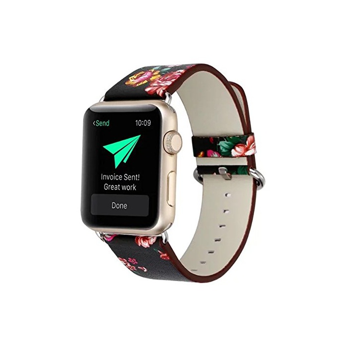 G-LOVE Apple Watch 밴드 벨트 가죽 레더 애플 워치 통용 밴드 워치 교환 벨트 꽃무늬 보호 벨트 멋쟁이 남녀 겸용