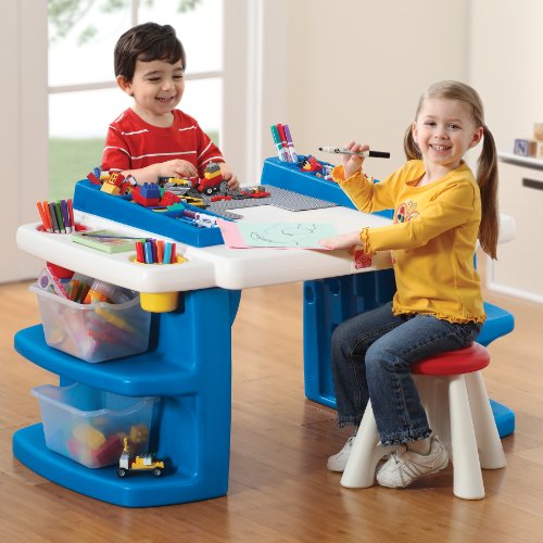 -. Binding : Toy -. Brand : Step2 -. Color : white blue yellow red -. Department : mens -. EAN : 0793625052348 -. Feature : Large workspace for creative projects and building blocks / Features four cups and two removable trays to organize small pieces / Molded-in storage areas help keep projects organized / Holds two 10.5" x 15" (26.7 x 38 cm) building block base plates / Four bins included for extra storage -. IsAdultProduct : 0 -. Label : Step2 -. Manufacturer : Step2 -. Model : 811700 -. MPN : 811700 -. NumberOfItems : 1 -. PackageQuantity : 1 -. PartNumber : 811700 -. ProductGroup : Toy -. ProductTypeName : TOYS_AND_GAMES -. Publisher : Step2 -. Size : 20.00 H 43.00 W 26.00 D -. Studio : Step2 -. Title : Step2 Build And Store Block And Activity Table -. UPC : 798804932176 -. Warranty : No Warranty