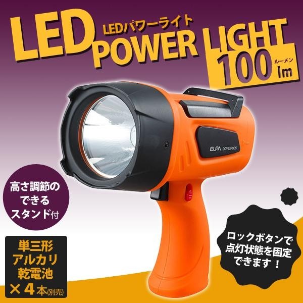 | 仕様 | 使用電池:単三形アルカリ乾電池×4本(別売) 連続点灯時間:約2時間 ※アルカリ乾電池使用時・電池の性能により異なる 光源:白色 LED×1灯 明るさ:100lm(照度 6500lx/1m) ※中心点照度・電池初期時 取扱説明書:台紙に記載 保証期間:1年 |