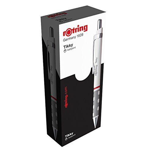 -. Binding : Office Product -. Brand : Rotring -. Color : White -. EAN : 3501170770894 -. Feature : Retractable pen is pocket- and airplane-safe. / The dual-material Softtouch rubberized grip makes the pen exceptionally comfortable to hold. / The plastic body is lightweight. The triangular barrel provides relaxed drawing and won't slide on tilted tables. / Pen includes robust metal clips and a polished chrome-plated top push button. / Limited warranty: guaranteed for 2 years from original purchase date against defects in materials or workmanship. Not for any use on skin, including tattoos. -. Label : Newell Rubbermaid Office -. Manufacturer : Newell Rubbermaid Office -. Model : 1904718 -. MPN : 1904718 -. NumberOfItems : 1 -. PackageQuantity : 1 -. PartNumber : 1904718 -. ProductGroup : Office Product -. ProductTypeName : WRITING_INSTRUMENT -. Publisher : Newell Rubbermaid Office -. Size : N/A -. SKU : SC-MS-S0770890 -. Studio : Newell Rubbermaid Office -. Title : Rotring Tikky Ballpoint Pen, Medium Point, White Barrel, Black Ink (1904718) -. Warranty : Limited warranty: guaranteed for 2 years from original purchase date against defects in materials or workmanship.