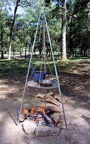 Product Description Versatile, go-anywhere cookout grill Heavy-duty 18? diameter chrome grill Sturdy chain-corded galvanized steel legs Clipped top plate to hold legs in place Fast and easy set-up and dismantles easily for compact storage Can also be used as a lantern hanger