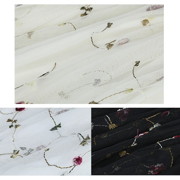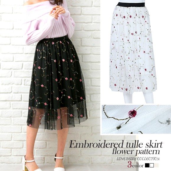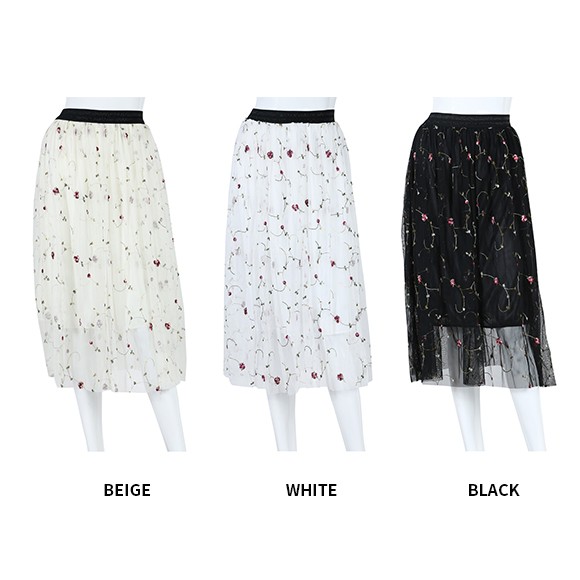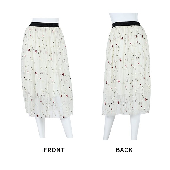 刺繍されたフラワー柄が可愛らしい印象を与えてくれるスカート。