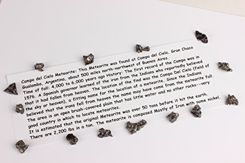 Studio : Dancing Bear Publisher : Dancing Bear Binding : Toy Product Description This science kit includes6 to 8 pcs of genuine meteorites, a one inch magnifying box, an educational information card, Authenticity certificate and a velvet pouch. The meteorites measure approximately 3/8- ½ inch. These meteorites fell over 4000 years ago! These meteorites were found in the Campo del Cielo area in Argentina. It is estimated that the original meteorite weighed over 50 tons before it hit the earth (there are 2,200 lbs in one ton)! The meteorites are composed mostly of iron with some nickel. Each kit is assembled in the USA. Buying this kit supports The Pearl Buck Center in their mission to help people with disabilities obtain employment. We also donate 10% of our profits to charities! Dancing Bear is proud to provide our customers with a 100% satisfaction guarantee. If you are not completely satisfied, we will gladly refund your money plus shipping. Shipping is fast and ships by Priority mail. 0
