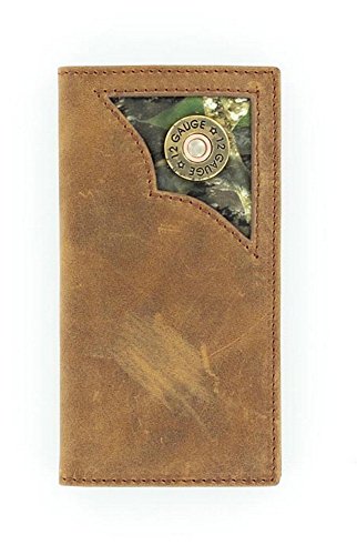 -. Feature : Crafted Of Top Grain Genuine Leather / Mossy Oak camouflage inlay with a brass-tone 12-gauge shotgun shell ornament / Interior credit card slots, ID window, and photo insert