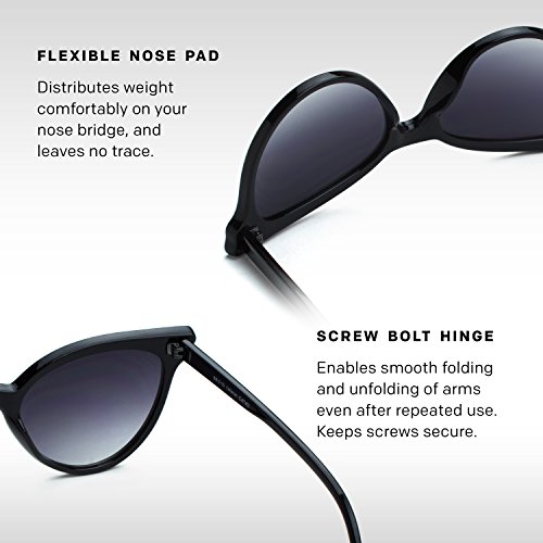 - HIGH QUALITY MATERIAL: V by Vye Womens Oversized/Trendy Sun Glasses are made with impact resistant polycarbonate lenses, enhanced with HD contrast in low light conditions. The ultralight frame and flexible nose pad make for an incredible experience, as they distribute the weight comfortably on your nose bridge, leaving no marks behind.