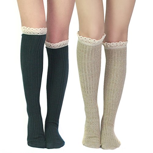 -. Binding : Apparel -. Brand : kilofly -. ClothingSize : One Size -. Department : womens -. Feature : Made of soft, comfortable cotton blend / Small/Medium (Recommend for women with shoe size 5-9) / Knee high socks / Include 2 pairs of socks, with colors as shown in images / Colors may vary slightly from the pictures due to different computer monitors and their settings. -. ProductGroup : Apparel -. ProductTypeName : SOCKSHOSIERY -. Size : One Size -. Title : kilofly Women's Soft Lace Trim Knee-High Socks, Value Set of 2 Pairs