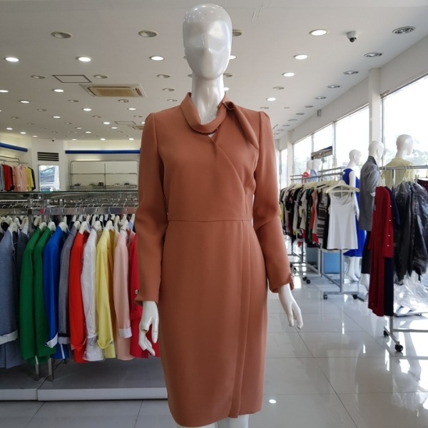스카프 디테일의 H라인 원피스-JA7F9-WOP240-카멜