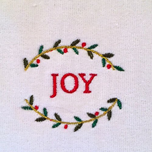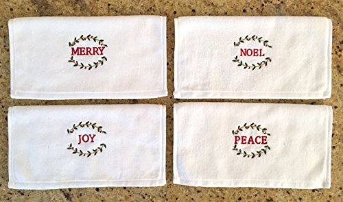 Product Description Beautiful White Soft Hand Tip Towels with Elegant Embroidered Christmas Themed Words of Inspiration including Peace, Merry, Joy, and Noel. 0