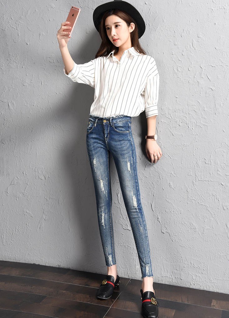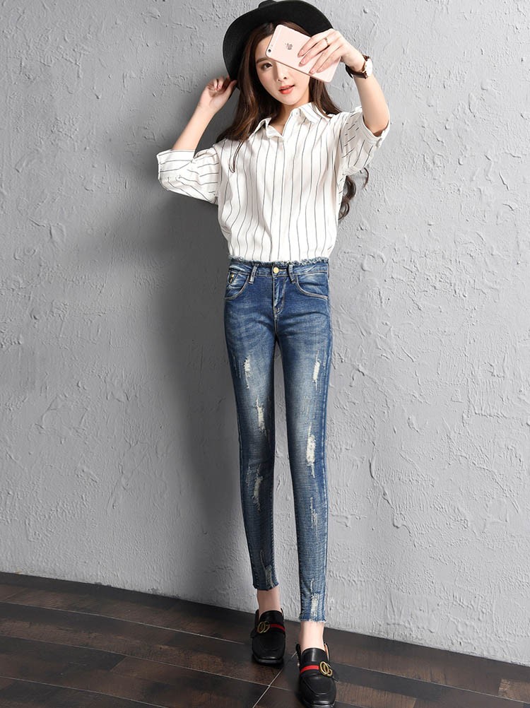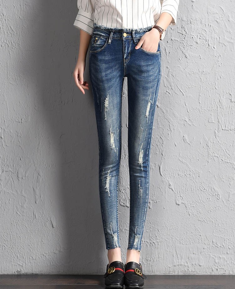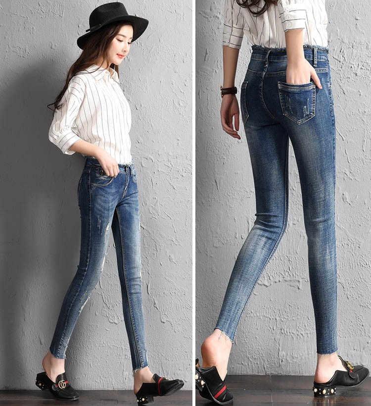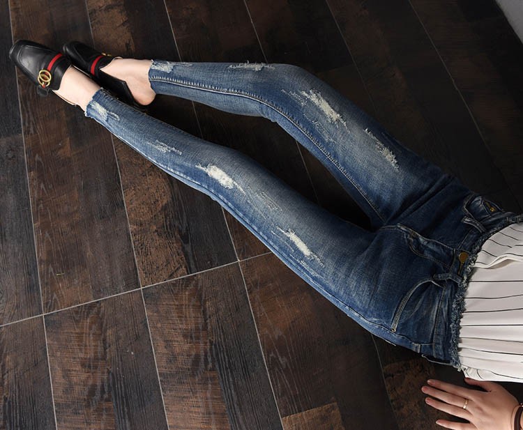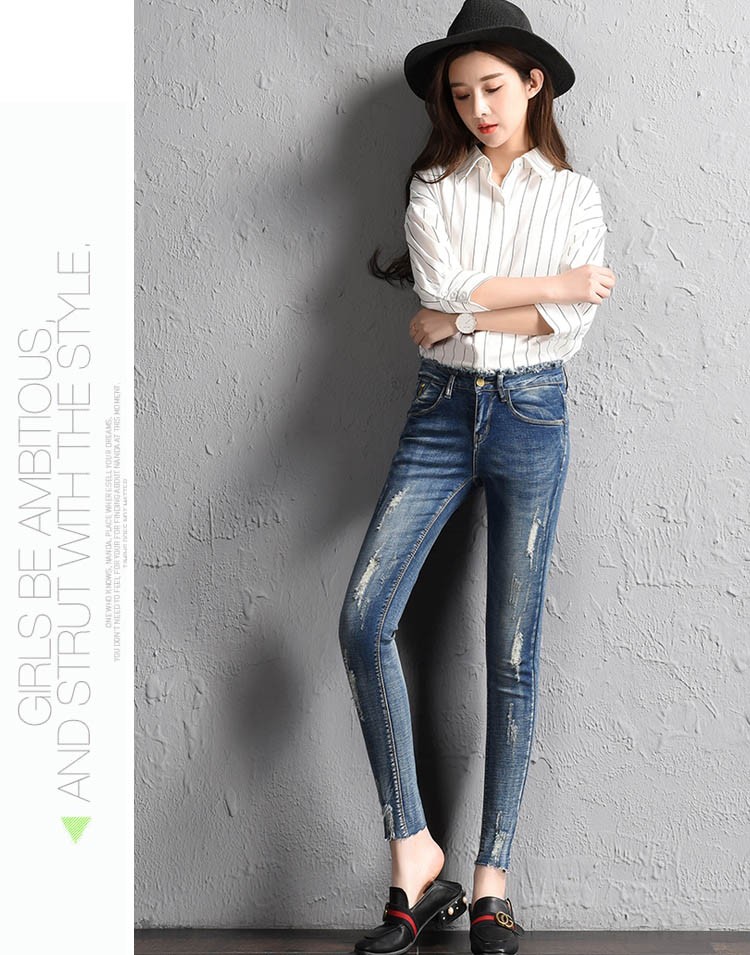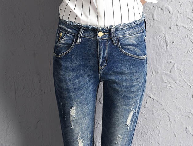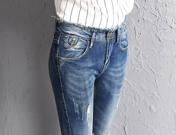 【入荷後営業日2,3日以内出荷予定 通関待ちや不良により出荷遅くなる場合はメールにてご連絡いたします。メール受信設定によっては正常に受信されない場合はございますので、 弊社からのメールを予め受信頂くようご設定くださいませ。】 ボトムス デニム ジーンズ タイト ダメージ 美脚 ライトウォッシュ デニムパンツ 弾力性 レディス レディース 春 新作美脚九分丈タイトダメージデニムパンツ◆素材:コットン85%+ポリエステル15%