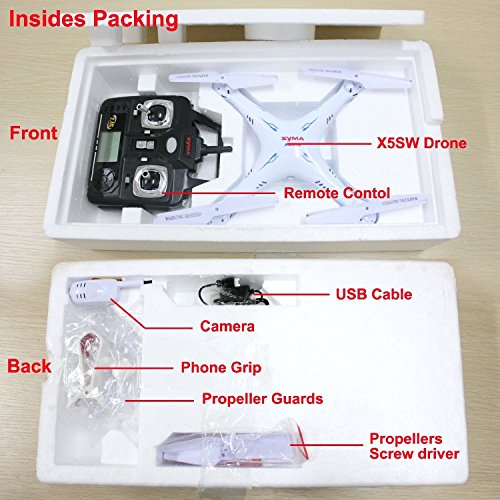 Wifi FPV X5SW allows you to view photos & video while flying It supports any IOS and Android phones. The cell phone holder keeps your phone secure all the time