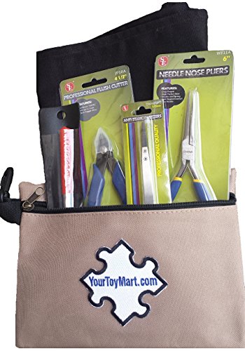 3D Model Building Tool Kit Includes Pliers, Flush Cutter, Tweezers, Mandrel, Building Surface and Canvas Carry Pouch Bag