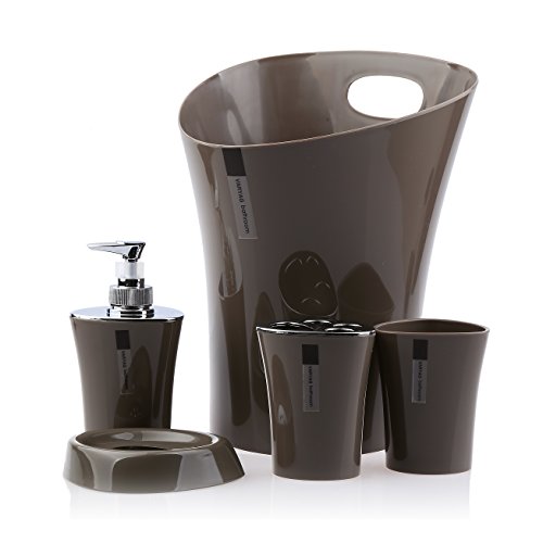 - Bathroom Set Includes 1pc Soap Dispenser + 1pc Soap Dish + 1pc Toothbrush Holder + 1pc Tumbler + 1pc Waste Bin
