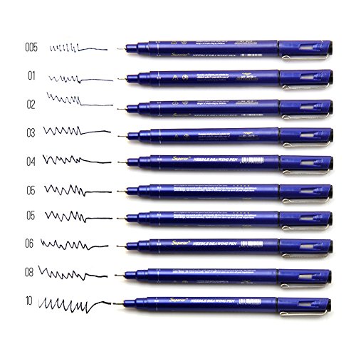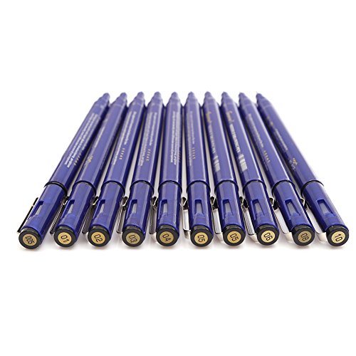 - ☞SET OF 10: Extra fine tip multiliner pens come in nib sizes 0.05mm, 0.1mm, 0.2mm, 0.3mm, 0.4mm, 0.5mm, 0.5mm, 0.6mm, 0.8mm, 1mm.
