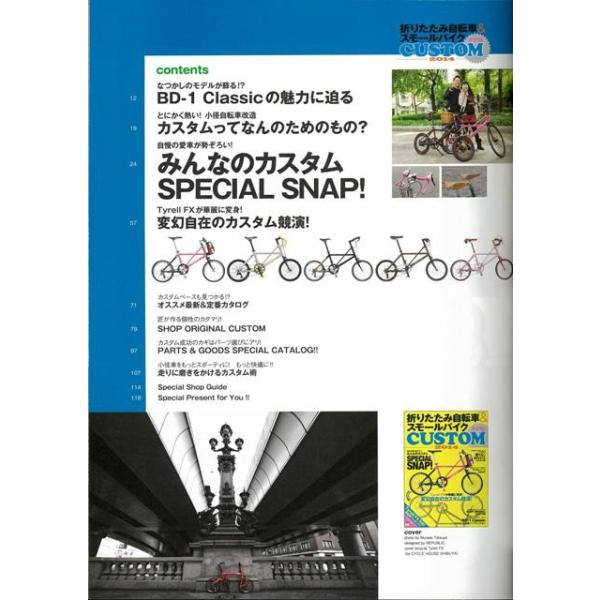 【商品基本情報】 商品名称:折りたたみ自転車&スモールバイクCUSTOM2014 著者/出版社:/ 初版発行日:2014/01/25 サイズ:A4変判 ページ数:120 ISBN/JAN:9784777812653/4528189409521