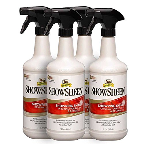 Studio : Absorbine Publisher : Absorbine Binding : Misc. Product Description ShowSheen is uniquely formulated to provide the serious horse owner with an unsurpassed multi - purpose grooming ai. It coats each hair shaft to keep manes and tails tangle free, while its conditioning action reduces static fly - aways. The coat becomes smooth and sleek, accentuating the body tone and definition. It also repels dust, dirt, and stains, protecting your grooming job and keeping your horse cleaner longer. 0