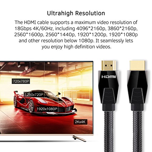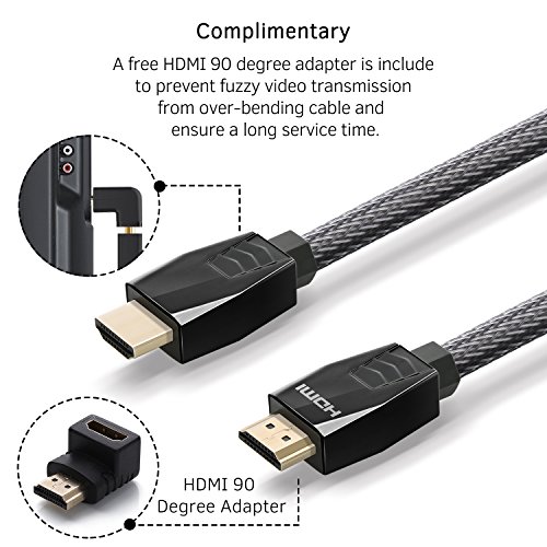 HDMI Cable 6 ft ( The Highest Speed ) 4K HDMI 2.0 Cord, Nylon Braided Cable 18Gbs Support Ethernet, ARC, UHD, 3D, HDR for 4K/HD TVs, PS4/3, Xbox one, PC, Displays and More + Right Angle Adapter