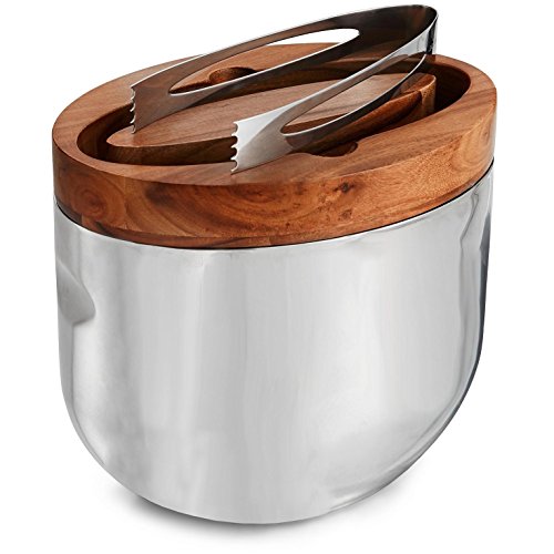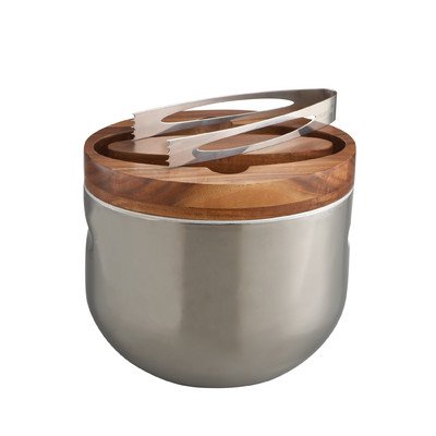 Studio : Nambe Publisher : Nambe Binding : Kitchen Product Description An intriguing combination of wood and metal, the Mikko Ice Bucket sits elegantly on your bar or tabletop, keeping its contents cool. The Ice bucket comes with a pair of tongs that fit cleverly in the lid of the bucket. 0