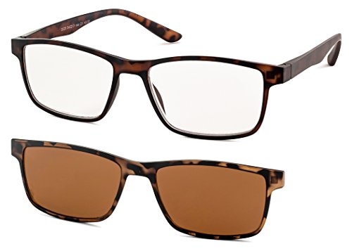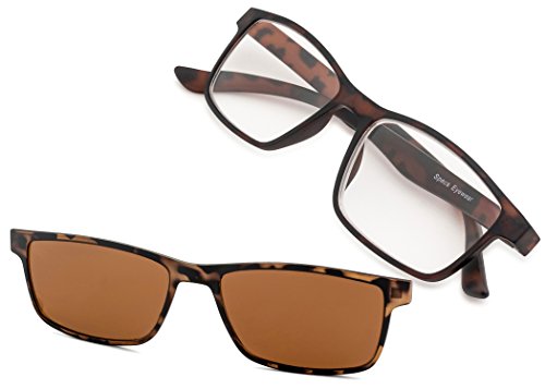 Specs Rectangular Reading Glasses With a Sun Clip