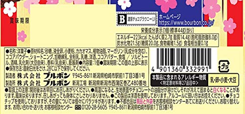 原材料:砂糖、液全卵、小麦粉、カカオマス、植物油脂、マーガリン(乳成分を含む)、ココアパウダー、ショートニング、加糖練乳、全粉乳、乳糖、洋酒、ココアバター、食塩 / ソルビトール、酒精、乳化剤(大豆由来)、香料(乳由来)、膨脹剤