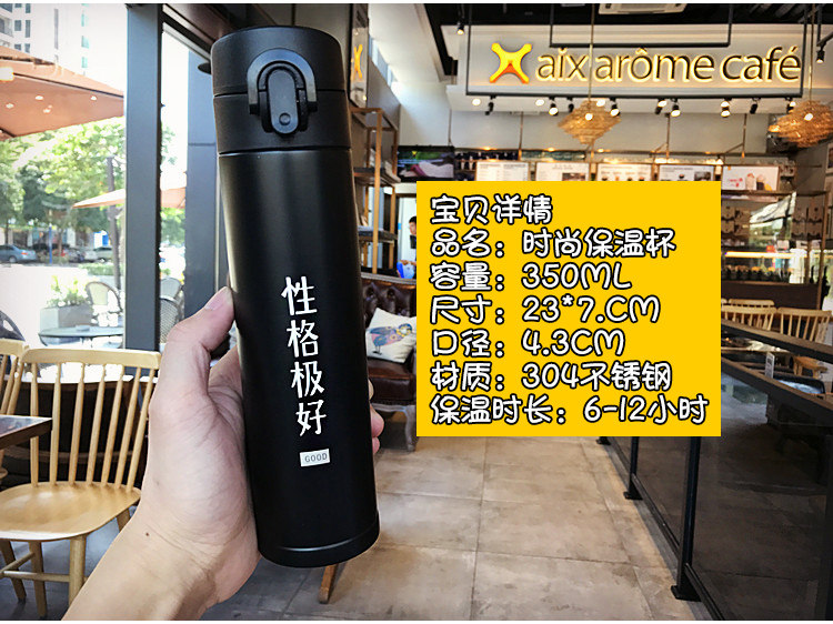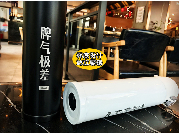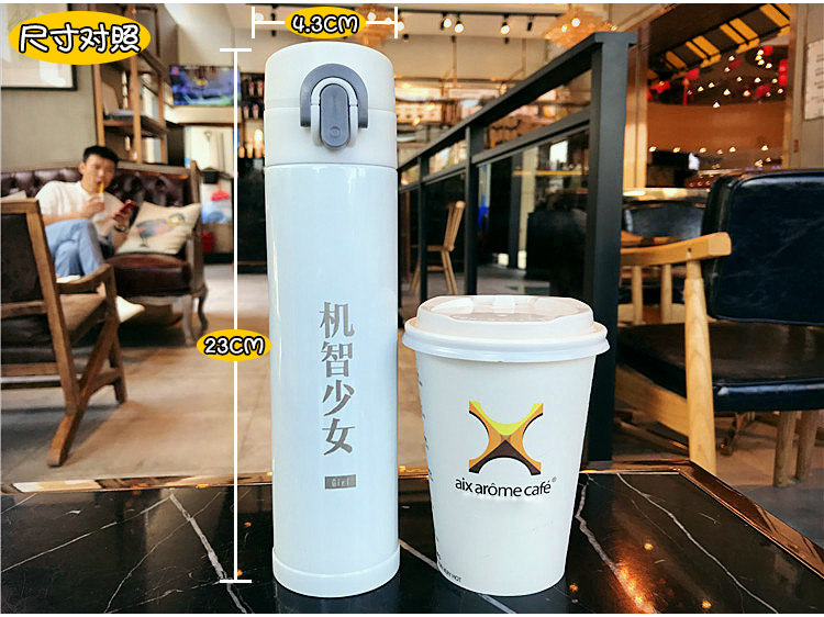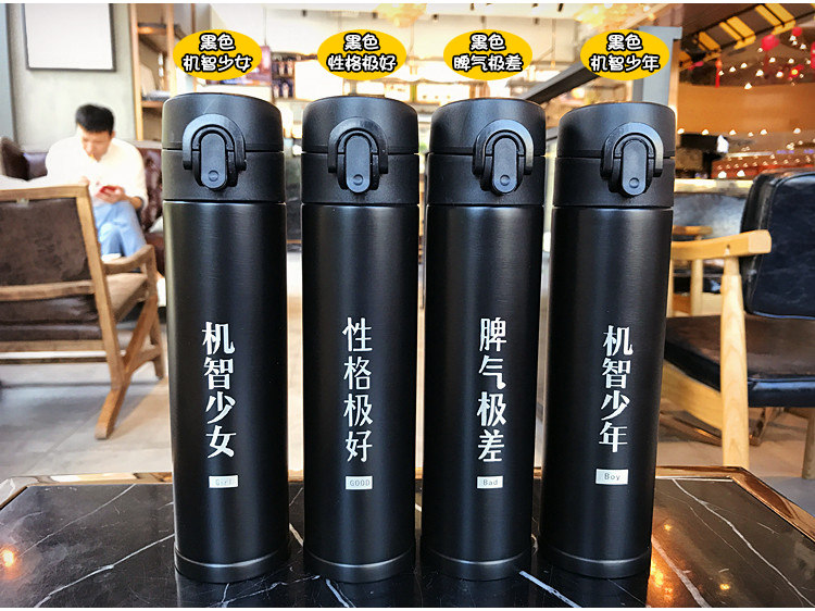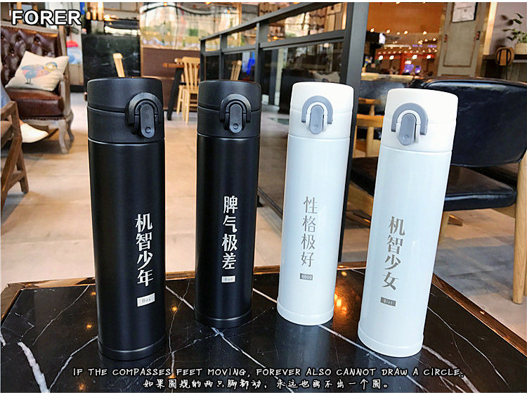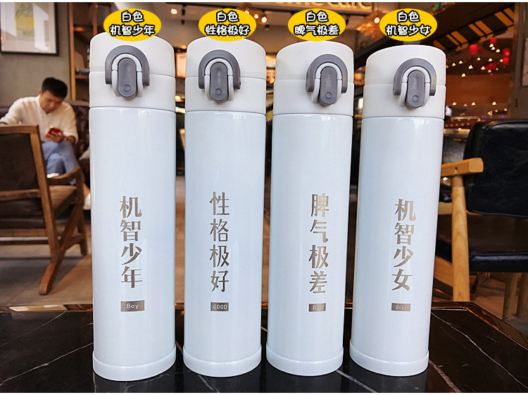 创意文字机智少女磨砂保温杯男女便携情侣水瓶学生弹盖随手水杯子