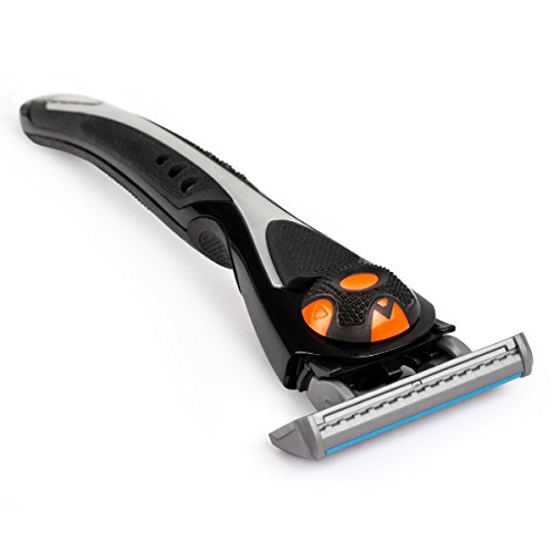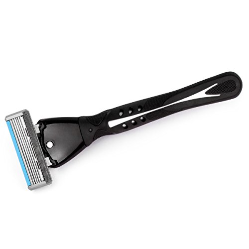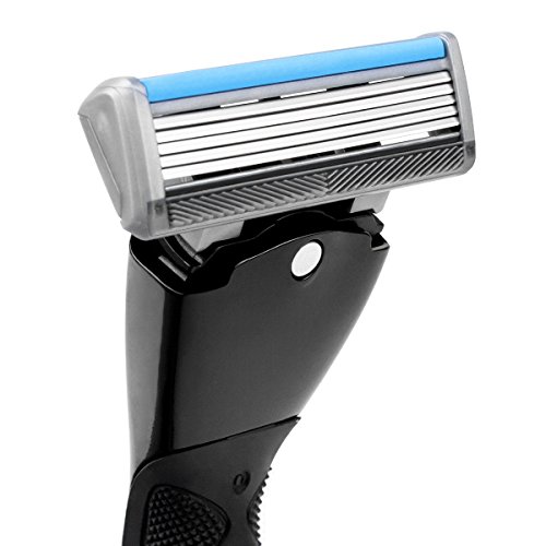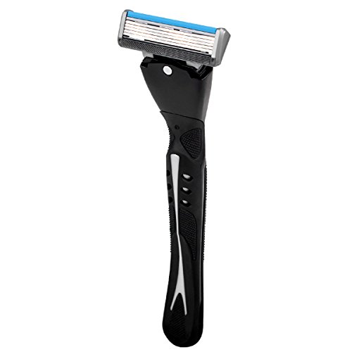QSHAVE Black Series Manual Men's Shaving Razor Made in Germany with X5 Blade (5-Blade) Replacement Cartridges/Refills (1 Razor + 2 Cartridges)