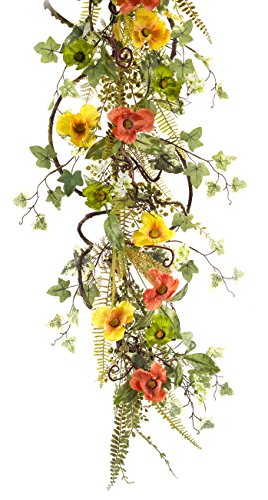 Melrose International Poppy, Ivy, Fern Garland, 54-Inch