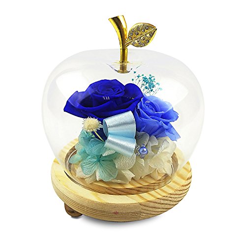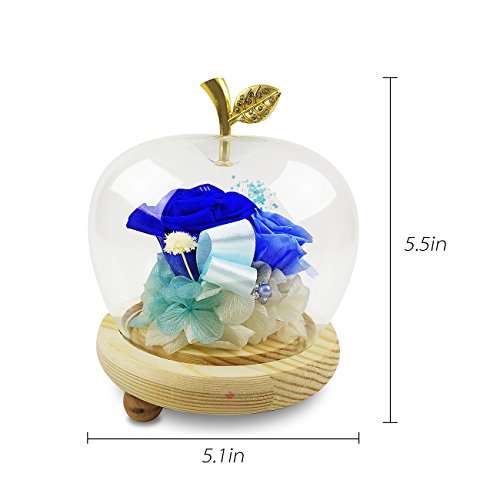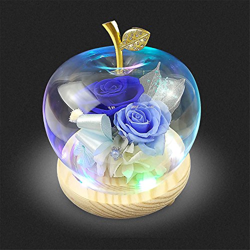 HPPFOTRS Handmade Preserved Rose Never Withered Roses Flower in Apple Glass Dome, Gift for Valentine's Day Anniversary Birthday, with LED Flash Light (Simple pakage)