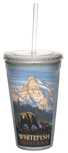 Tree-Free Greetings cc33356 Scenic Whitefish Montana Grizzly Bear and Cub by Paul A. Lanquist Artful Traveler Double-Walled Cool Cup with Straw, 16-Ounce