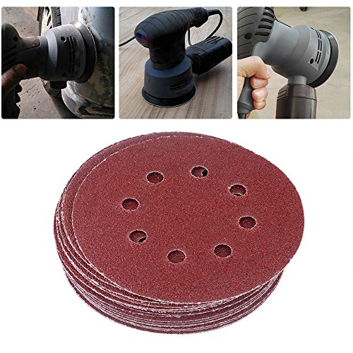 AUSTOR 60 Pieces 8 Holes Sanding Discs, 5 Inch Hook and Loop 40/ 60/ 80/ 120/ 180/ 240 Grit Sandpaper Assortment for Random Orbital Sander