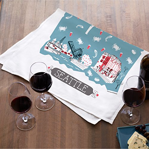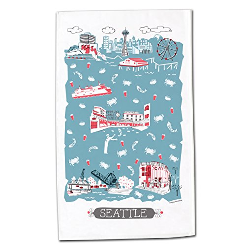 Seattle Gifts, Seattle Dish Towel that features 5 of Emerald City’s Most Iconic Landmarks, Serves As A Dish Cleaning Towel or Decorative Towel for the Kitchen, 100% Cotton Twill
