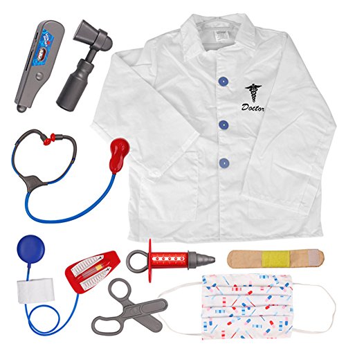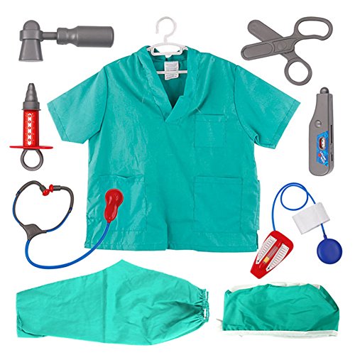 -. Brand : TopTie -. Department : unisex-baby -. Feature : Made of quality polyester. / Product comes complete with 9 pieces doctor costumes set or 10 pieces surgeon costume for choices. / Encouraging kids to imagine & explore the exciting pretend experiences of being a doctor or surgeon. / Gentle machine washable costume set is easy to clean. / Perfect for Halloween, dress up, play time, or cosplay; great for imaginary and pretend play, dress up and role play. -. Model : ETFH-DP92702 -. ProductGroup : Apparel -. ProductTypeName : BABY_COSTUME -. Title : TopTie Doctor Role Play Set / Dress Up Surgeon Costumes Set For Kids