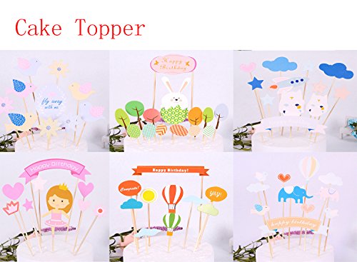 Kbraveo 63pcs(6Types) Rich Kinds Balloon,Princess,Animals Cupcake Toppers Cake Cupcake Decorative For Kids Birthday Party Themed Party Baby Shower
