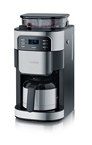 Severin Kaffeemaschine mit Mahlwerk KA 4812 Kaffeeautomat mit Thermokanne und Timer-Funktion drei Aromastufen auch als Filterkaffeemaschine Edelstahl-Thermokanne fur 8 Tass