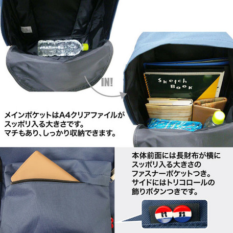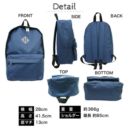 飾りボタンがアクセントのシンプルなデイパックです。