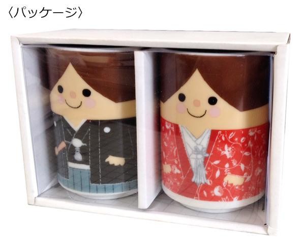fk094igrjsギフトにもぴったり♪可愛い和装の新郎新婦の夫婦湯呑みですサイズ1個あたり:約H88×W62Φmm個装サイズ:10×15×7cm重量個装重量:450g素材・材質磁器仕様容量(1個あたり):約200ml電子レンジ・食器洗い乾燥機使用可セット内容新郎・新婦各1製造国日本和装の新郎新婦の可愛い夫婦湯呑み※写真と実際の商品とでは、多少色合いが異なる場合がございますギフトにもぴったり♪可愛い和装の新郎新婦の夫婦湯呑みです